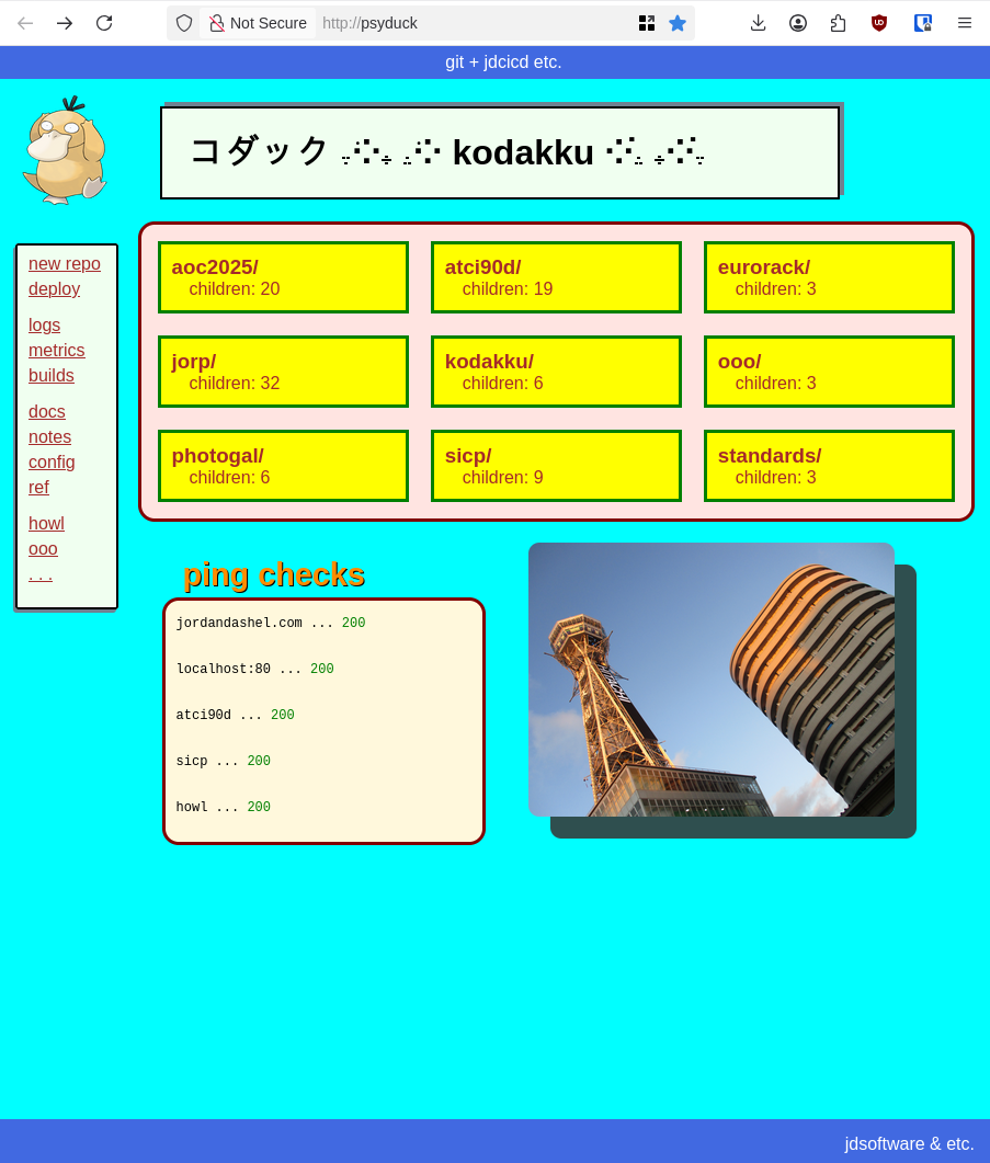 the main boxes in the middle link to some of my most commonly-referenced and used repos, from the git server hosted locally on the same device.